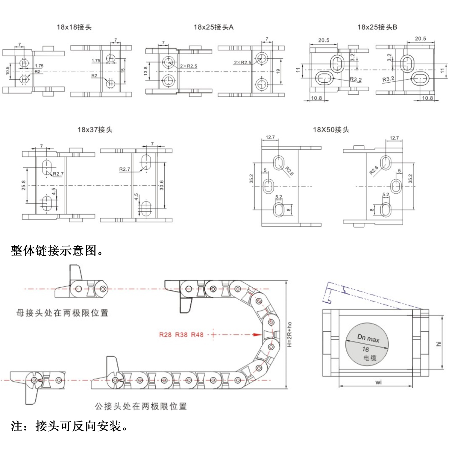 產(chǎn)品優(yōu)點(diǎn) 工程塑料拖鏈具有機(jī)械強(qiáng)度高,耐磨性好、抗沖擊能力強(qiáng),無論在室內(nèi)外溫度-40℃~+110℃的條件下,不易變形、老化,性能穩(wěn)定,使用壽命長,本廠品廣泛應(yīng)用于各類數(shù)控機(jī)床、工業(yè)自動化設(shè)備、工程塑料機(jī)械、電力自動化裝配線等各類機(jī)械電氣行業(yè)。